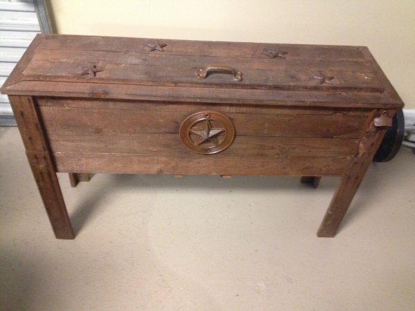 Texas Wood Chest Cooler. Stars, handles and bottle opener. 4ft x 2.5ft. Aluminum insulated and...