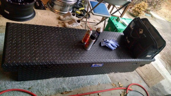UWS truck toolbox for sale. 69" chrome but I have sprayed it with black plastidip. Asking $75 OBO. Preferred...