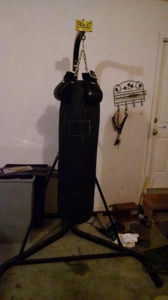 Everlast punching bag, stand and gloves for sale. I think it's a 75lb bag. It took...