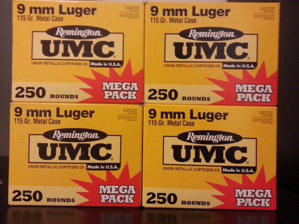 I'm selling a 1000 rounds of new Remington UMC 9mm ammo. They are packaged as four Mega...