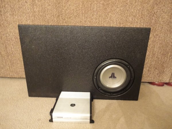 JL 10 w1 in a pro box. JL a1200 275 watt amp. the amp has plenty of power for the...