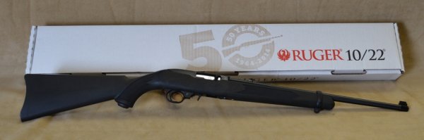 Ruger 10/22 50th anniversary model. Black synthetic stock. Comes with box docs 2mags and 150...