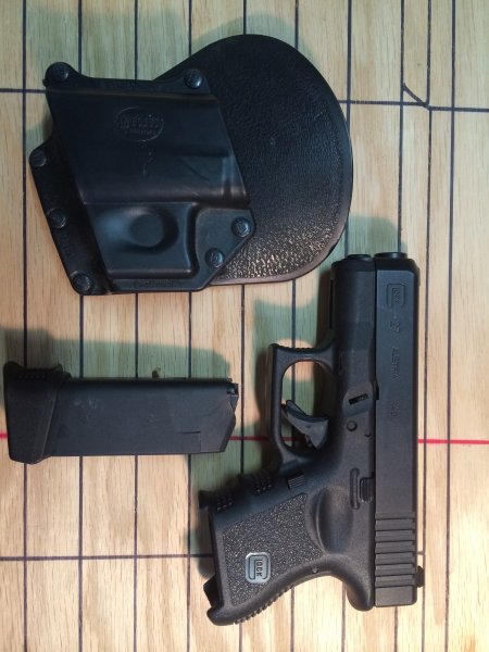 Glock 27 w/ night sights, 2 mags, and Fobus paddle holster