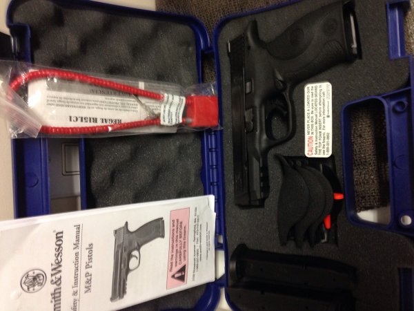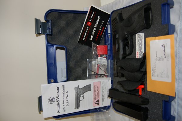 Like new M&P 40 cal wth 2 mags box lock instructions with hand grip laser sight.