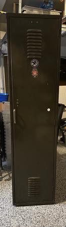 Item Description: 3 section locker approximately 6’-5 “ tall. Can get real measurements if needed. One leg slightly bent but can be bent back. One locker has rust in the floor area.